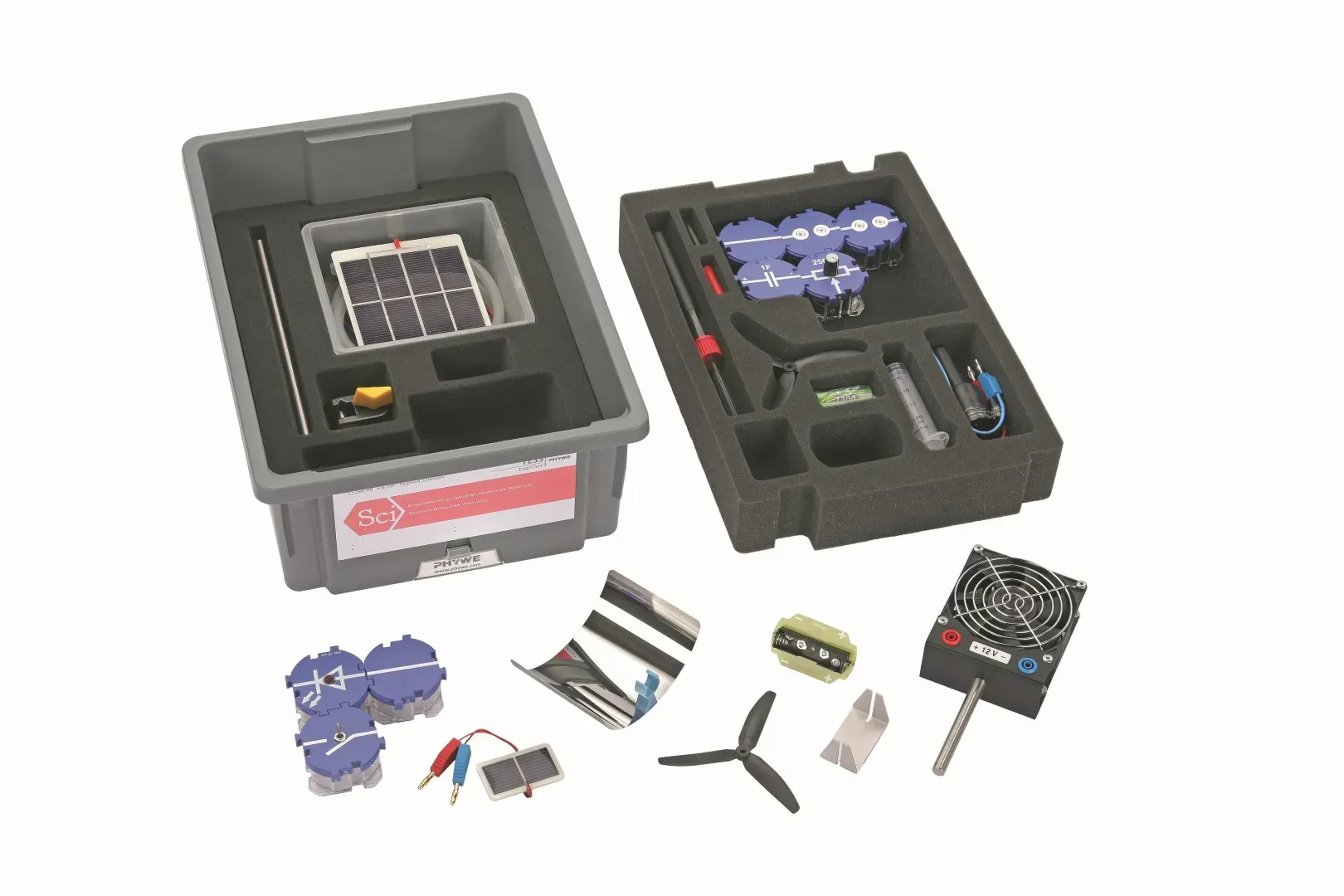 Shamol turbinalari, generatorlar va energiya o'lchash — PHYWE uskunalari bilan laboratoriya tajribalarini o'tkazish.